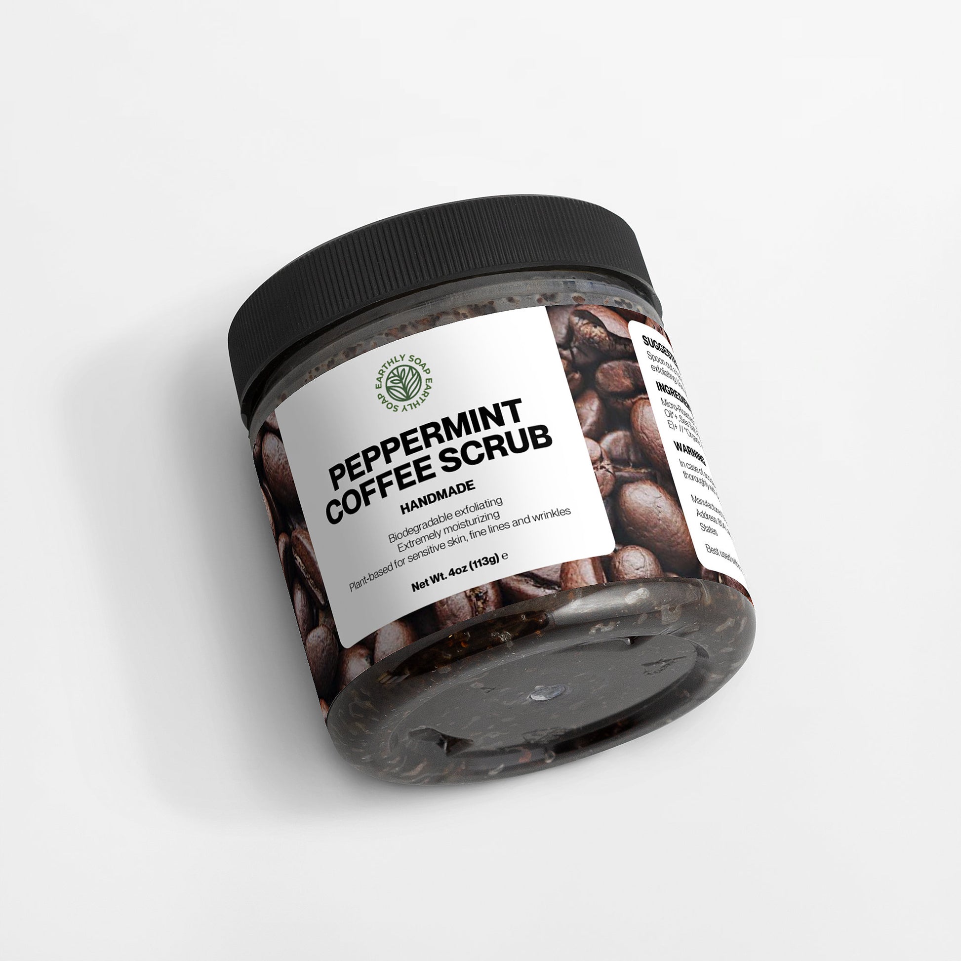 Ingredients: Micro-Roasted Coffee*+, Brown Sugar*+, Coconut Oil*+, Castor Oil*+, Sea Salt, Peppermint Essential Oil*, Tocopherol (Vitamin E)+ // *Organic +Food-Grade